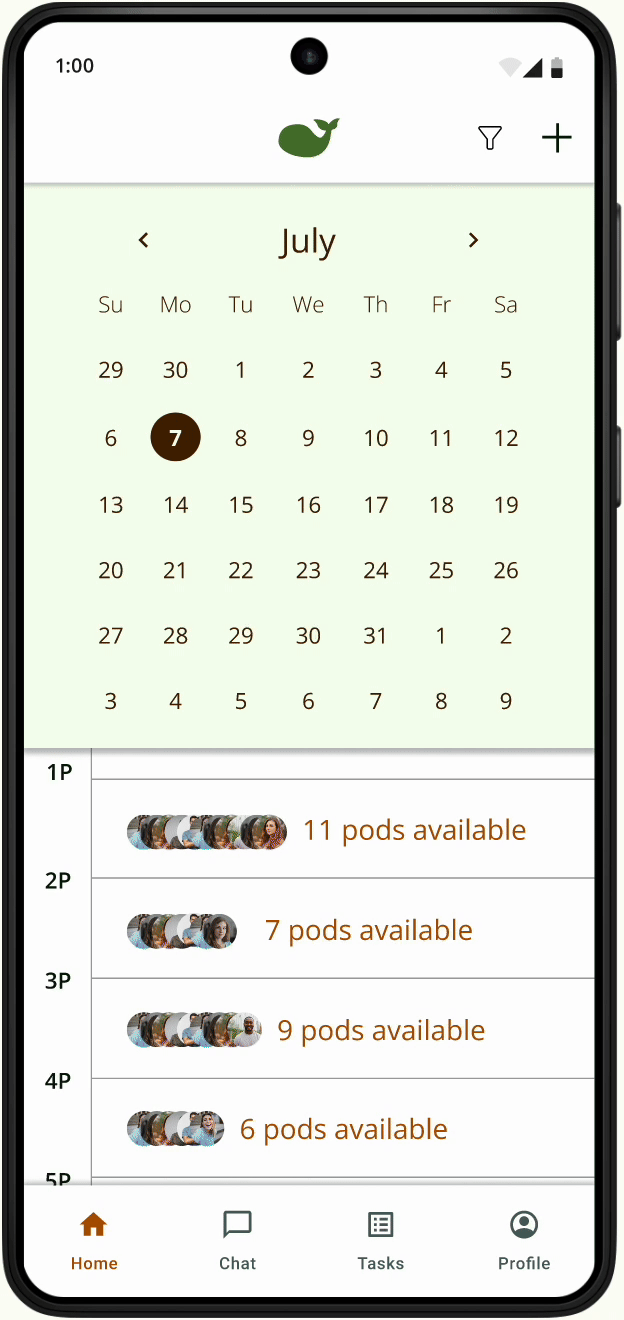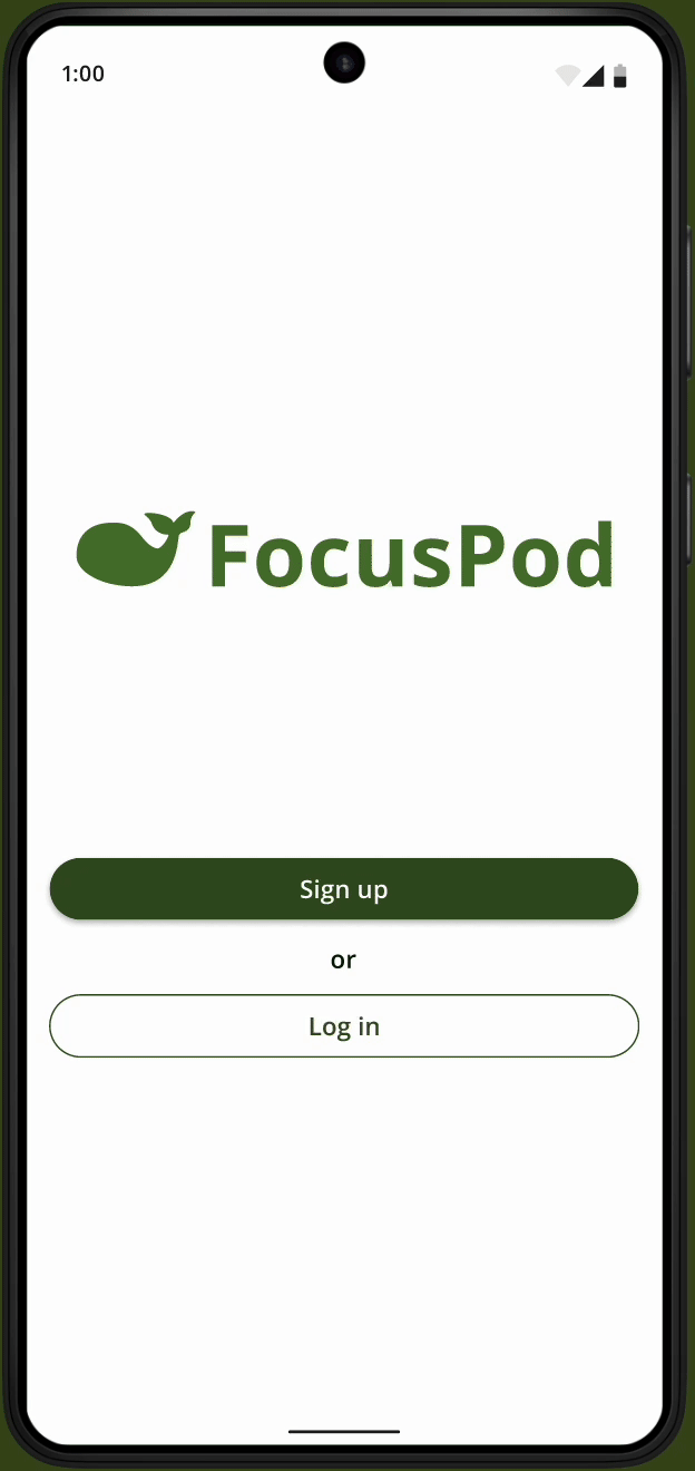 FocusPod is a mobile body doubling app where up to 4 users connect in a video call to work on their own tasks, such as studying, writing emails, doing chores, taking a productive break, and anything in between. Users could join an ongoing session/pod, create their own, or book future ones to keep accountability and maintain a routine. Additionally, users can filter between desktop tasks and moving tasks to work with people with similar goals and avoid distractions.